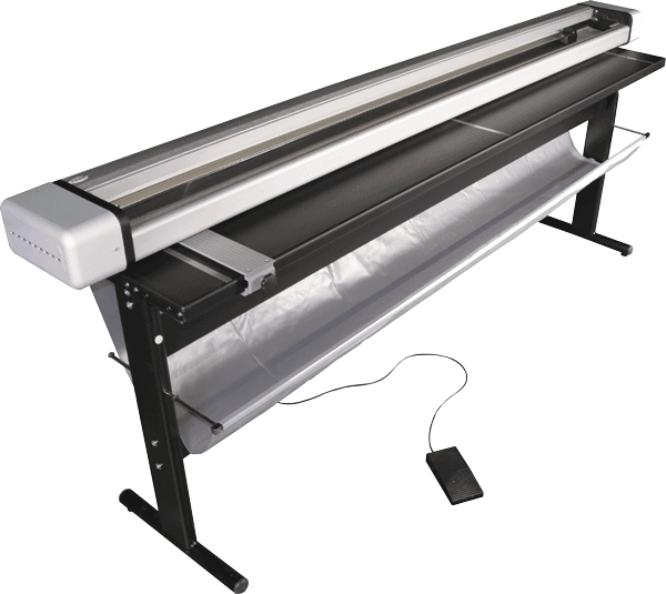 - Elektrische Schneidmaschine für dickere Materialien wie Fotopapier, Folien, Polypropylen, Laminate, Banner, PVC-Blachen und Canvas